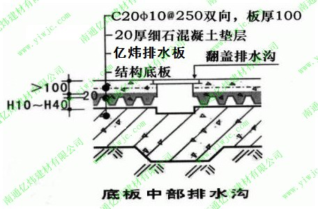 b、塑料排水板在平整的結(jié)構(gòu)底板上互相搭接滿鋪,結(jié)構(gòu)底板面不必找坡。